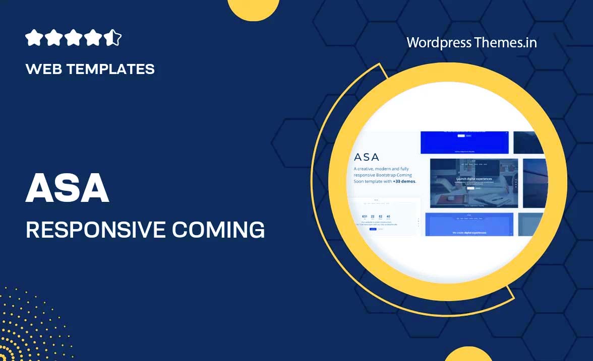 Asa – Responsive Coming Soon Template is a versatile and modern HTML template designed to help businesses and individuals create attention-grabbing and professional coming soon pages. With its responsive design, sleek layout, and array of customizable features, Asa is the perfect choice for anyone looking to build anticipation and excitement for their upcoming website or project. One of the standout features of Asa is its responsiveness. The template is built with a mobile-first approach, ensuring that your coming soon page will look stunning on any device, whether it’s a smartphone, tablet, or desktop computer. This is crucial in today’s mobile-dominated world, where the majority of internet traffic comes from mobile devices. With Asa, you can rest assured that your page will not only look great, but also perform seamlessly across all devices. Another notable feature of Asa is its range of customization options. The template includes a variety of pre-designed sections and elements that you can easily customize to match your brand or project. From changing the colors and fonts to adding your own images and text, Asa allows you to create a unique and personalized coming soon page that effectively communicates your message and captures the attention of your audience. Furthermore, Asa includes a countdown timer, which is a powerful tool for building anticipation and creating a sense of urgency. With the countdown timer, you can inform your visitors of the exact date and time when your website or project will be launched, creating excitement and encouraging them to stay engaged with your brand. Additionally, the template includes a contact form where visitors can leave their email addresses to receive updates and notifications about your upcoming launch. This not only helps you build a targeted email list, but also allows you to stay in touch with your audience and keep them informed about your progress. In terms of design, Asa is sleek, modern, and visually appealing. The template features a clean and minimalist layout that puts the focus on your message and content. With its smooth animations, stylish typography, and eye-catching graphics, Asa is sure to make a strong impression on your visitors and leave a lasting impact. Finally, Asa is easy to install and use. The template comes with detailed documentation and a fully functional code, making it simple for anyone to set up and customize their coming soon page. Whether you’re a web developer or a novice user, Asa provides all the tools and resources you need to create a professional and effective coming soon page. Overall, Asa – Responsive Coming Soon Template is a top-notch choice for anyone looking to create a stunning and effective coming soon page. With its responsive design, range of customization options, countdown timer, and sleek layout, Asa has everything you need to build anticipation and excitement for your upcoming website or project. So why wait? Get started with Asa today and captivate your audience with an unforgettable coming soon page.
